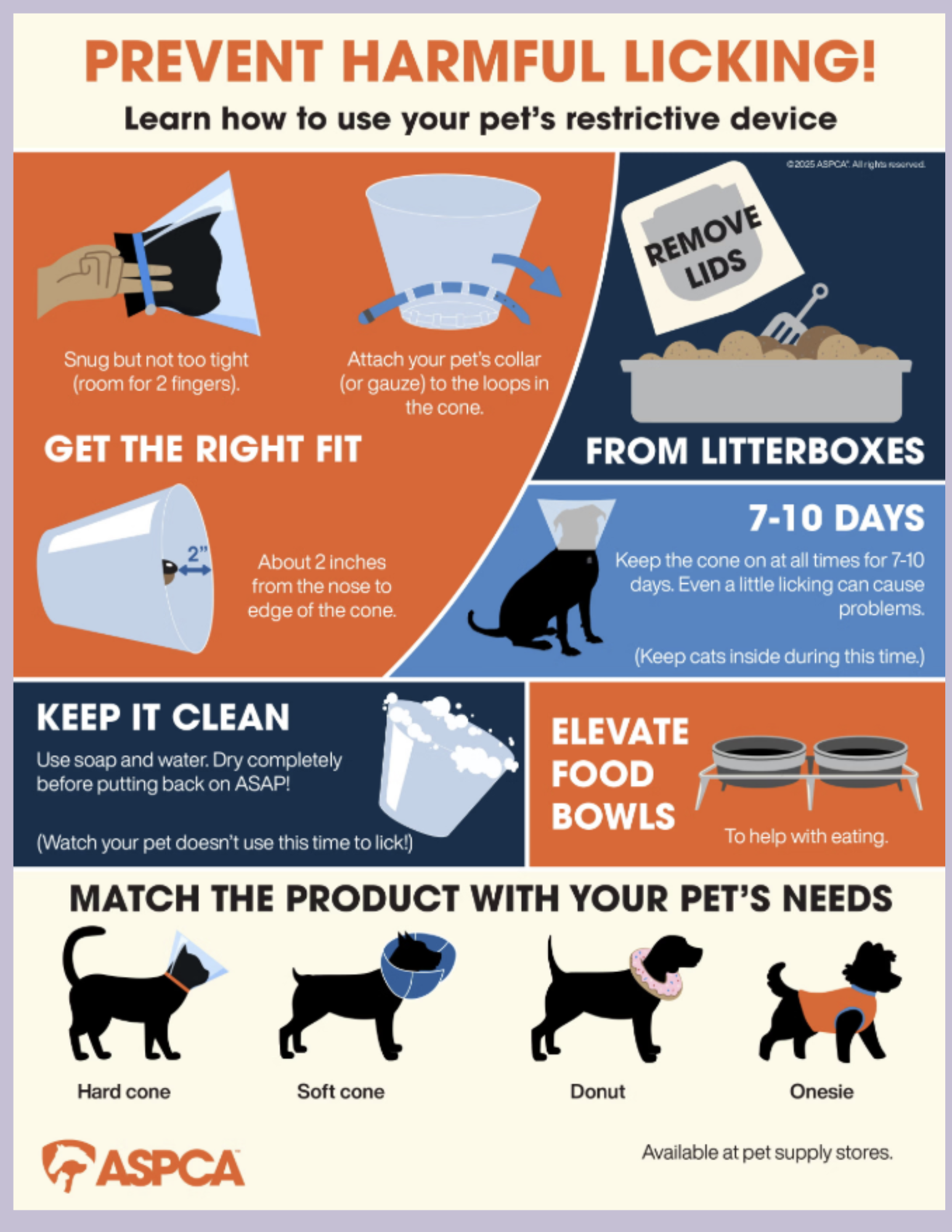 Do not allow your pet to lick the incision area. Licking is the #1 reason pets need follow up care after a spay or neuter surgery. Use an e-collar on your pet if necessary. They’re available from us or at your local Tractor Supply or Walmart.